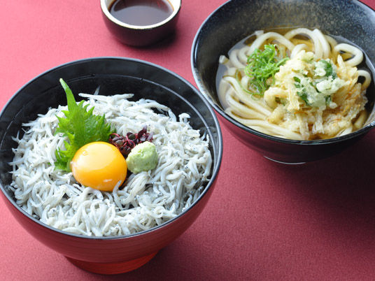 釜揚げしらす丼とミニかき揚げうどん (税込2,200円)