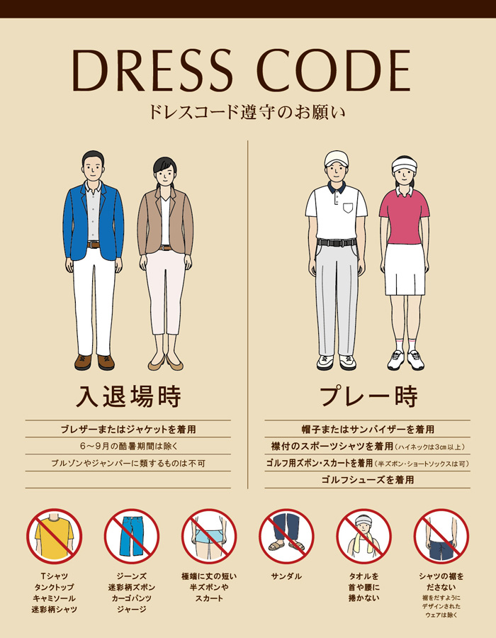 - ・クラブハウス内での着帽、レストラン内でのウィンドブレーカー類の着用はご遠慮ください。